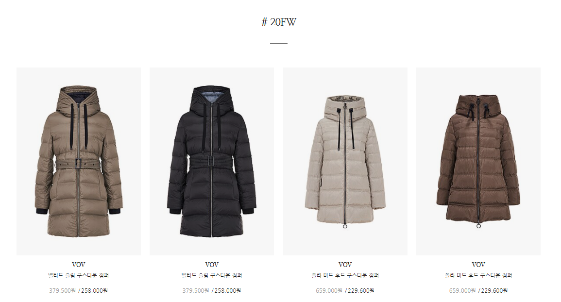 스페셜 오퍼라인 말고도 #20FW 코너에서 보면 다른 스타일들의 보브 패딩, 코트들이 많아요. 패딩 코너에 보면 하이넥 스타일들이 완전 고급지게 나왔더라고요. 구스다운이라 따뜻하게 입을 수 있고, 무릎 라인까지 오는 롱패딩들이여서 추운 겨울철 데일리 아우터로 딱이지 않을까 싶어요.